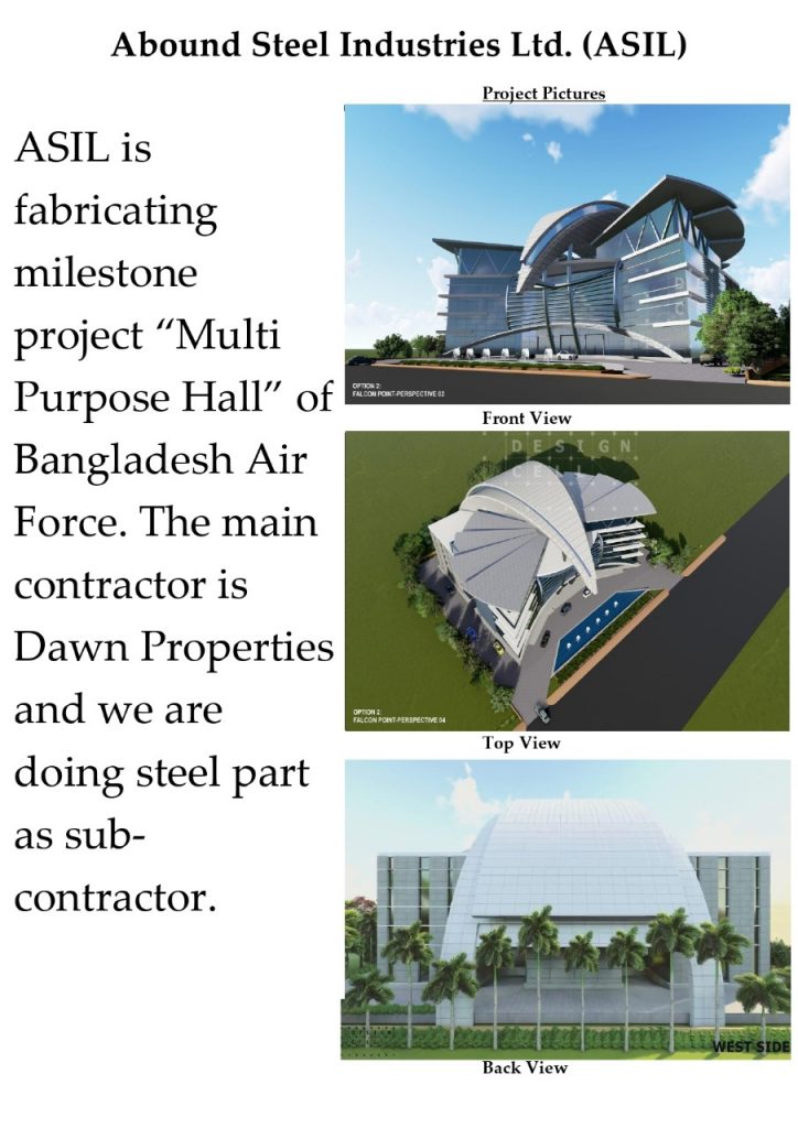 We have completed the steel part of 1 building in Chittagong Cantonment at Bayezid and another 2 buildings at Savar Cantonment as Sub-contract. The fabrication of steel members have been completed at our factory.